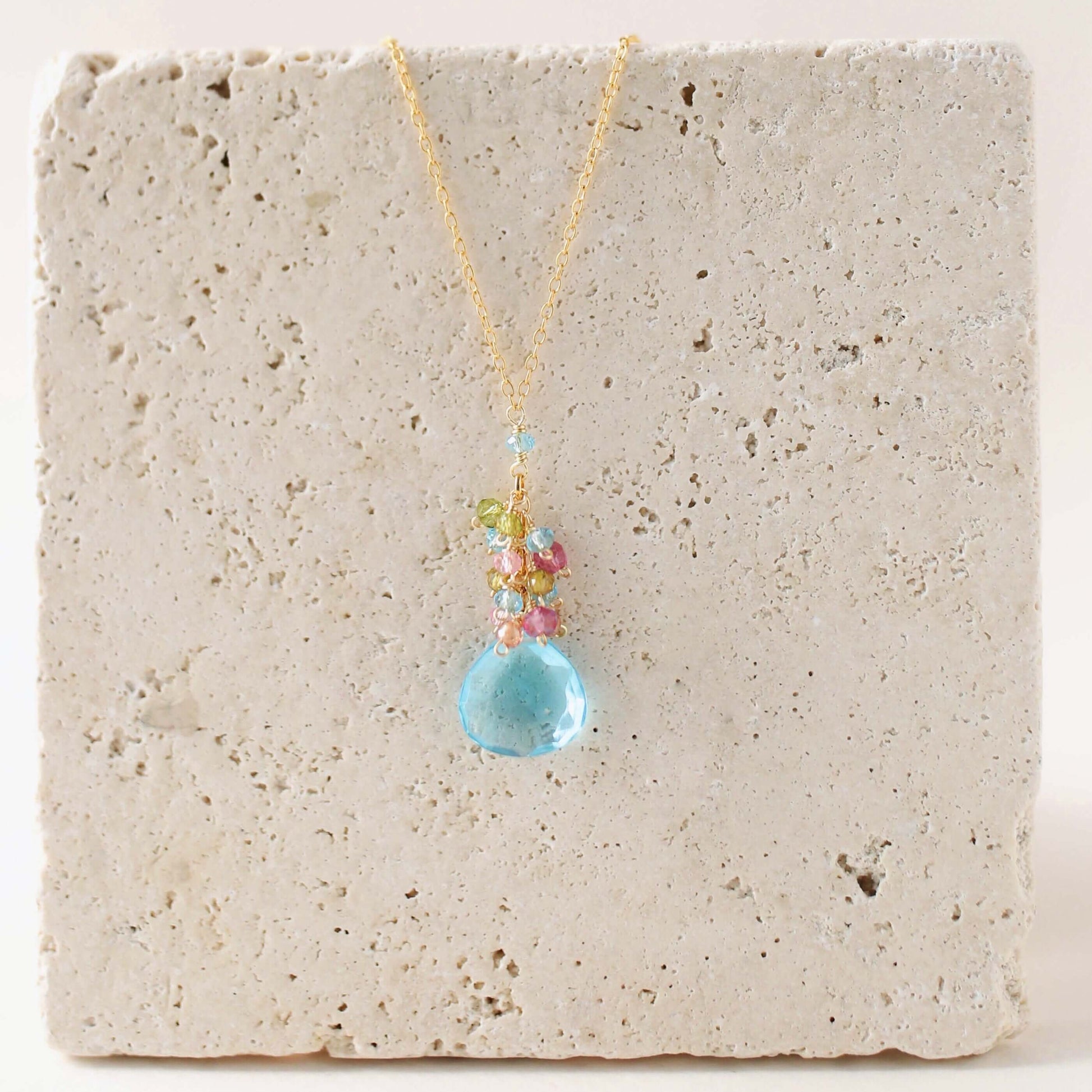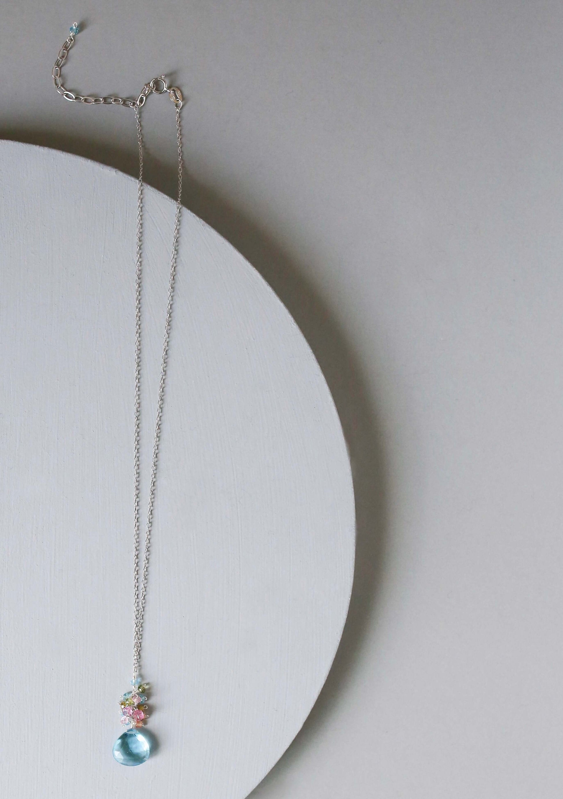 Aquamarine Quartz Silver Raindrop Cluster Necklace