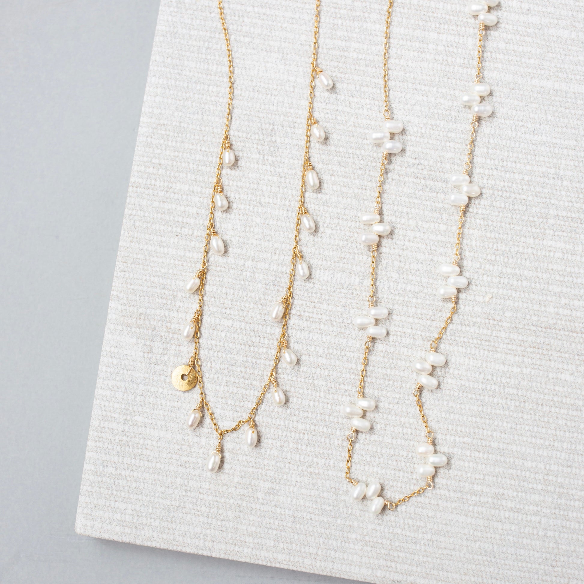 This delicate freshwater bead pearl necklace stands on it's own as a classic wardrobe staple and can be layered with any necklace.