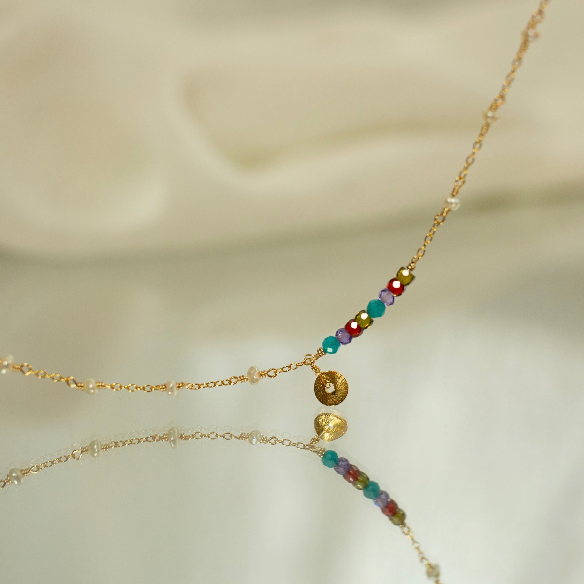 Daiquiri Chains are the perfect balance of classic and trend-setting styles, designed for effortless chic. Each necklace is hand-crafted with exquisite 14k gold plated Italian silver by our talented female artisans. Popular for layering, Daiquiri Chains add a tiny touch of colorful gemstone detail to any neckline. So go ahead and show off those 'pearls'...and gems!