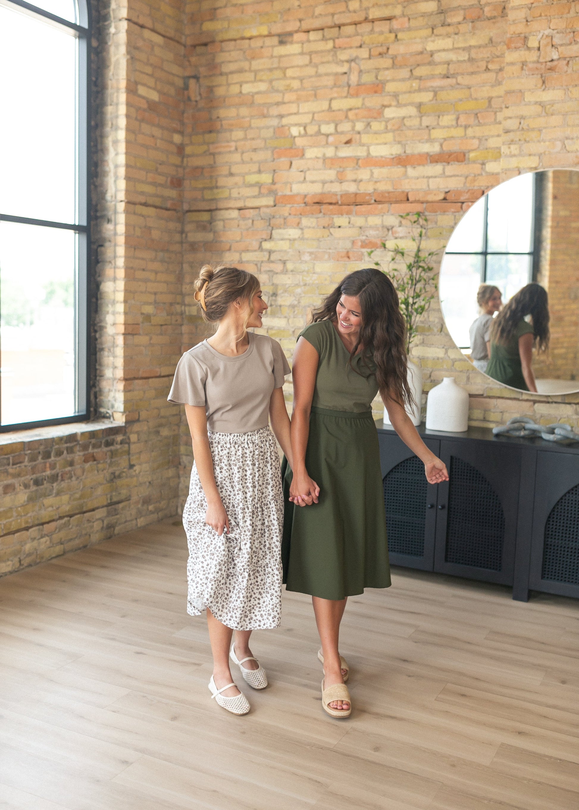 There’s something so fun about floral! The Harlow Tiered Floral Midi Skirt combines comfort and charm with a flowy, modest fit. Designed for easy movement—whether biking or heading to church—it pairs perfectly with sneakers, boots, or sandals. Featuring fresh fall colors, it’s a closet staple that looks great with a denim jacket or your favorite graphic tee!