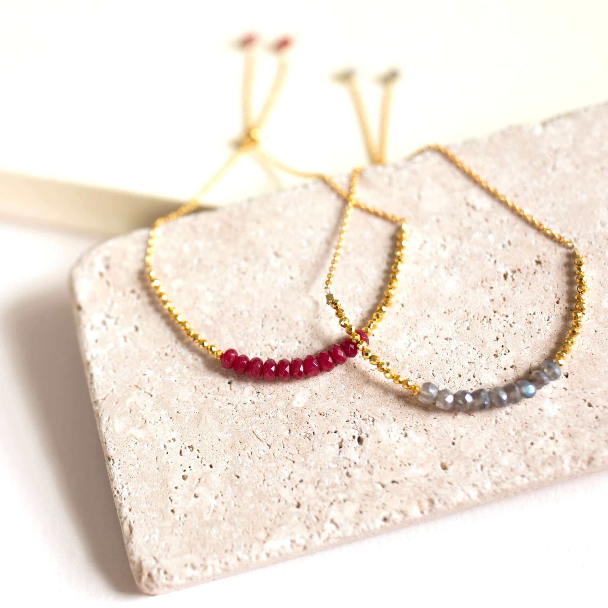 Our super simple bracelets are the ultimate arm candy and completely adjustable to fit anyone. Gorgeous alone or stacked. We've got plenty of options to create a unique look full of color and gems! Check out some of our inspiration to get ideas on how to combine them.