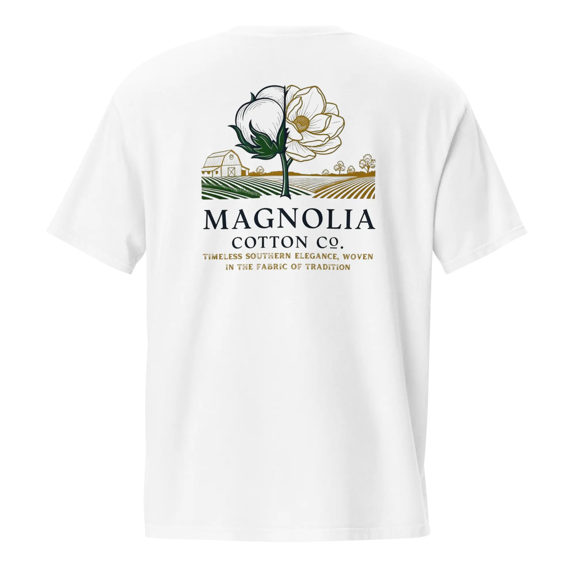 Step into tradition with our Timeless Southern Elegance T-Shirt, a classic staple from Magnolia Cotton Co. Featuring our signature slogan—“Timeless Southern elegance, woven in the fabric of tradition.”—this shirt captures the heart of Southern heritage and refined style.