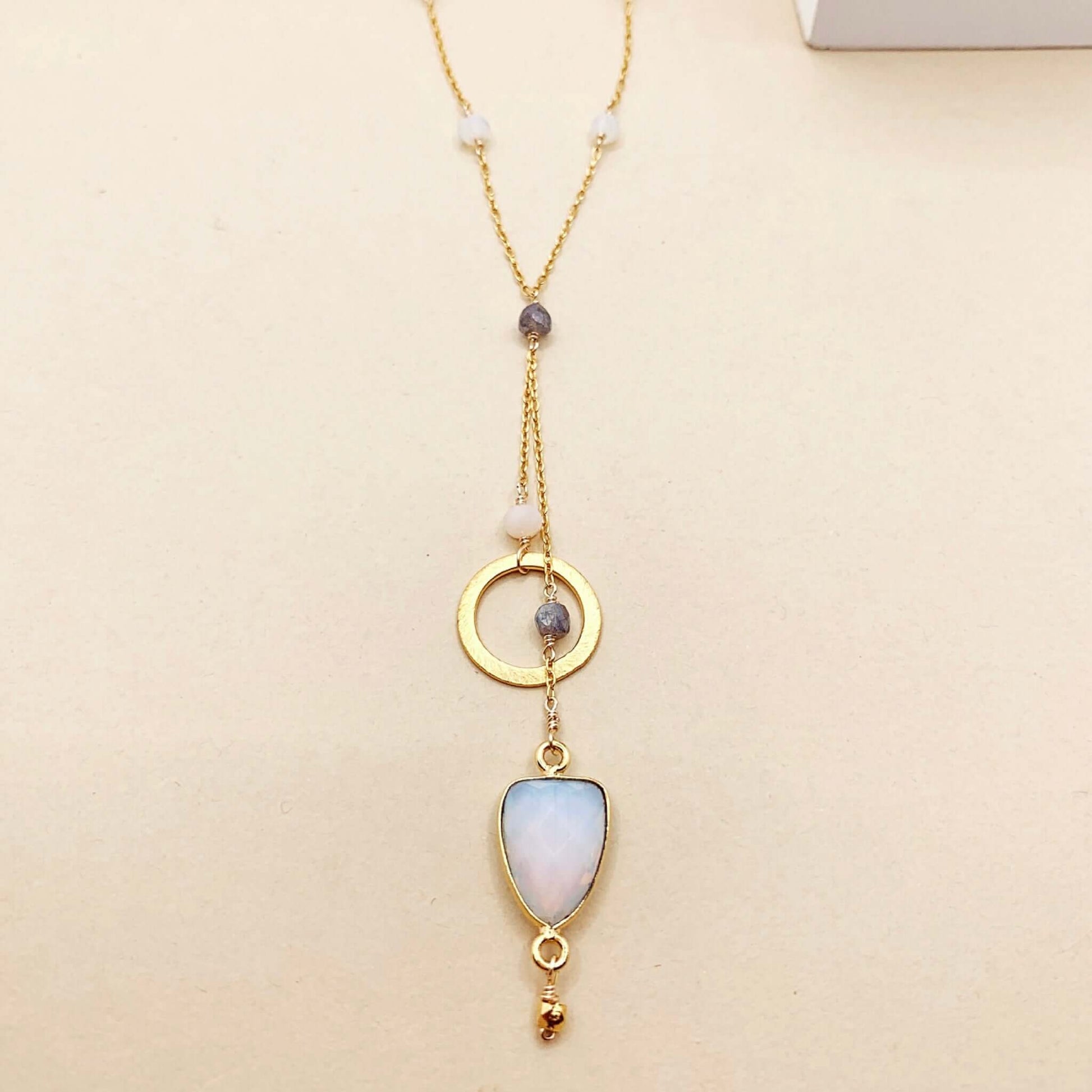 Our ballet collection is designed to be both modern and feminine. Pairing a beautiful circle accent with geometric gemstones in the graceful design of our ballet necklace.
