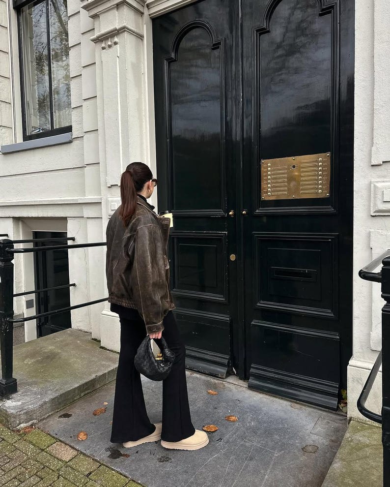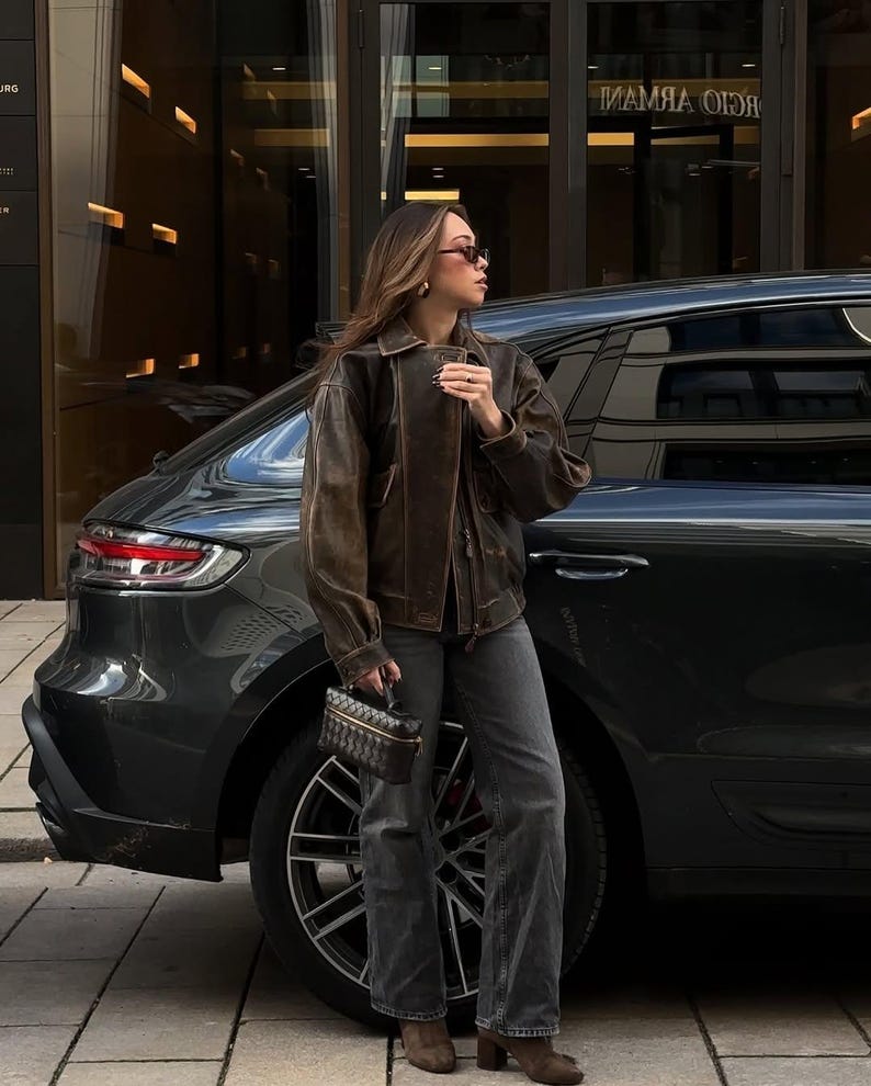 Overseize Distressed Brown Leather Jacket for All Retro, Casual Style - Classic Brown Designer leather jackets for women, Easter Sale