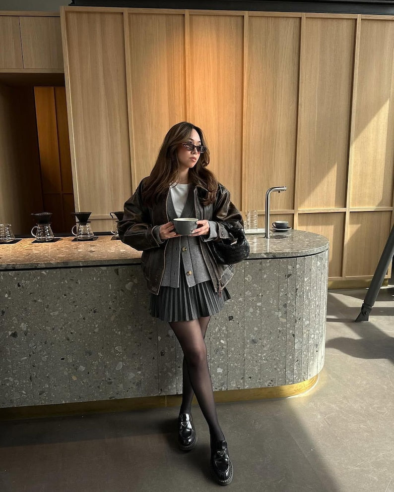 Designed with wide sleeves, a boxy silhouette, and classic zipper closure, this oversized moto jacket flatters every figure while offering premium comfort. Whether you're pairing it with high-waisted jeans, a sleek dress, or casual basics, this is the go-to outerwear piece for fall, winter, and beyond.