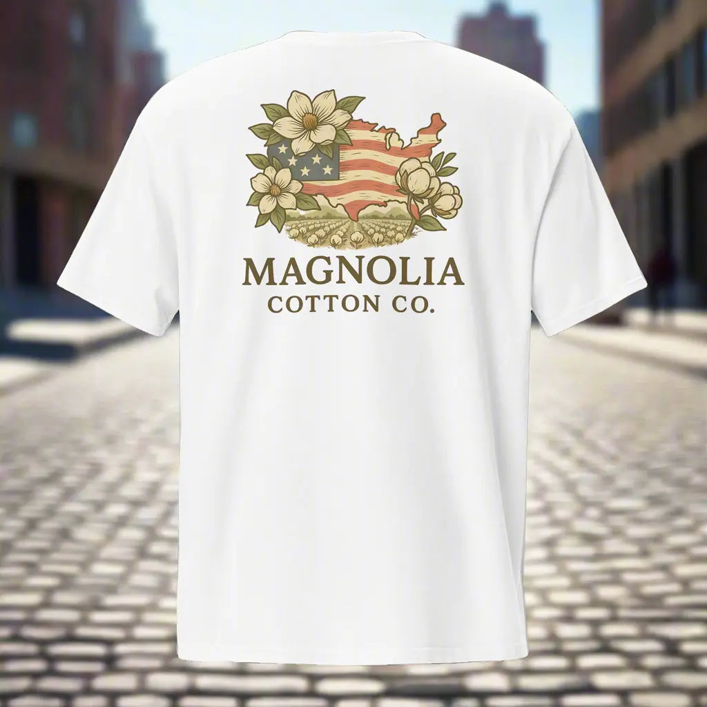 • Magnolia Cotton Co. logo on back; matching front pocket badge