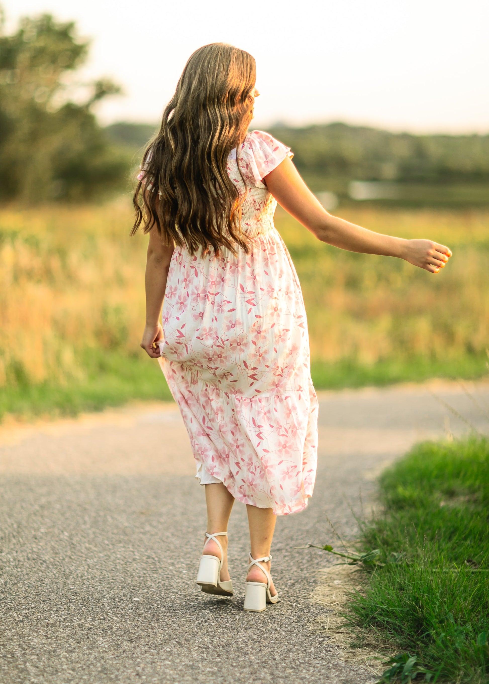 The Inherit Designed Summer Flutter Sleeve Smocked Midi Dress is your go-to for effortless elegance! With a fully lined silhouette, flutter sleeves, and a flattering smocked bodice, it's both feminine and nursing-friendly. Side pockets add everyday ease, and the floral print brings charm. Perfect for summer events, church, or family photos—plus, there’s a matching girl’s dress for sweet coordination!