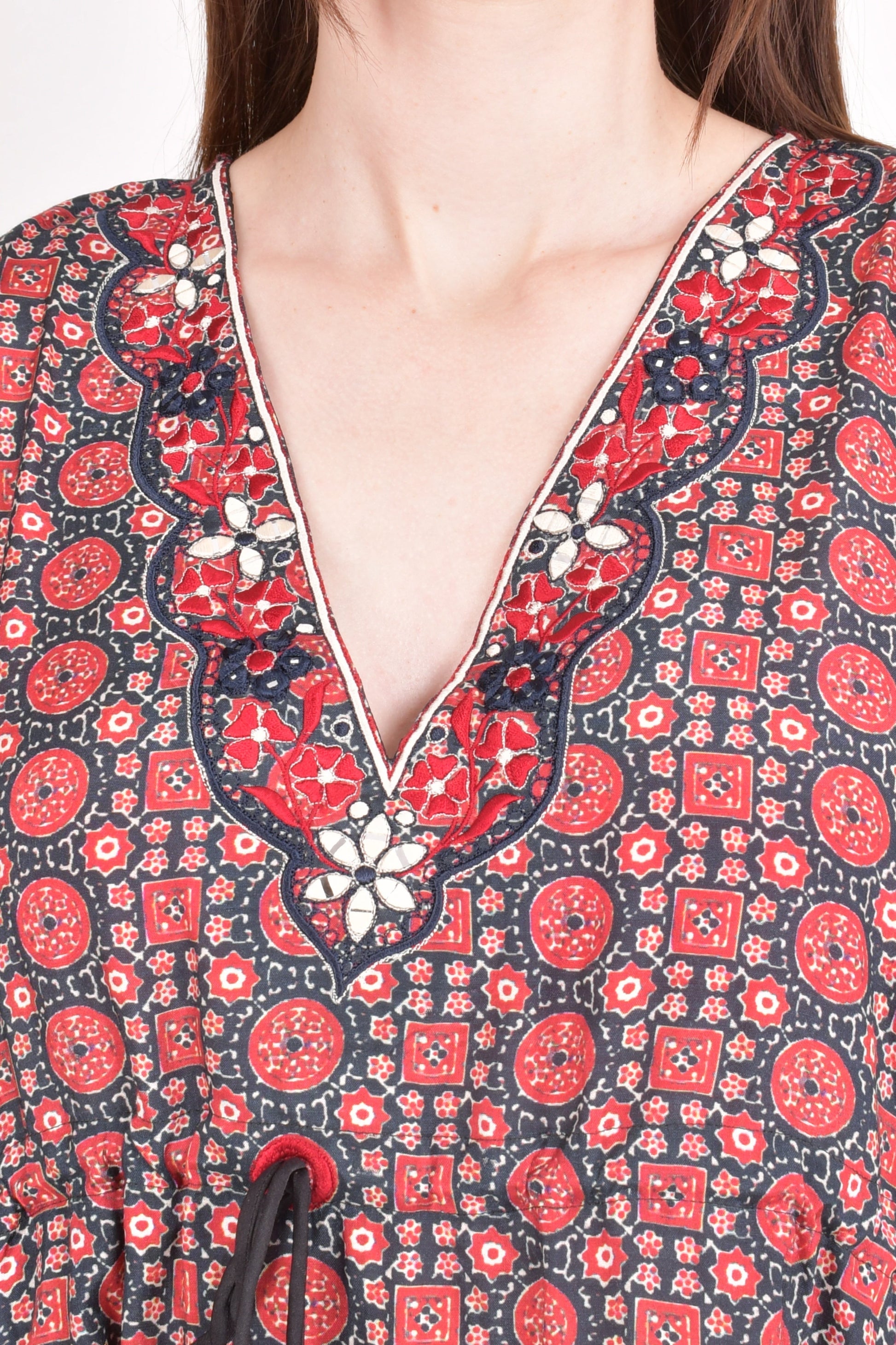 - Specifications: Pull on, all-over ajrakh print, resham embroidery, kimono sleeves, fully lined